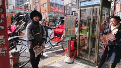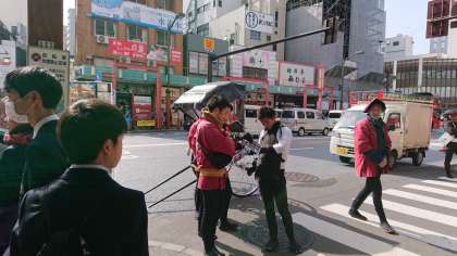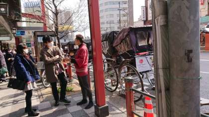 人力車のサービスをやっているそうです。毎日、雨の日も浅草周辺を回るとのこと。ご苦労様です。さすがに、背の高くがっちりした体格のかたが数人控えていました。(副校長)