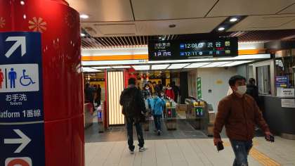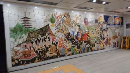 銀座線浅草駅も、とてもきれいになりました。昔とは違い、海外からのお客様を迎えるために、日本らしさをアピールしています。今も横で外国からの旅行者が写真を撮っています。駅の表示も日本語、英語、中国語、韓国語の表記が入れ替わります。(副校長)