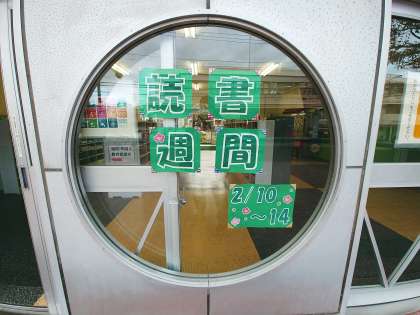 学校図書館司書さんが玄関にポスターを作ってくださいました。