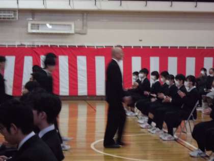 卒業生は教室で最後の学活とクラス写真撮影をした後、グラウンドを通り南門から下校しました。