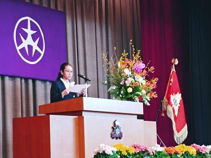 二年前、入学したあの日、慣れない環境や新しい級友たちに戸惑い、不安な気持ちでいっぱいだった私達を、先輩方は暖かく迎え入れてくださいました。そのおかげで気持ちがとても楽になり、学校生活が楽しくなったことを昨日のことのように思い出します。