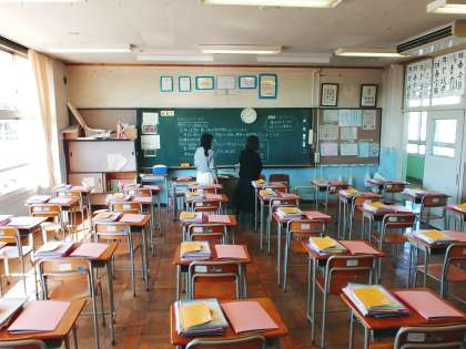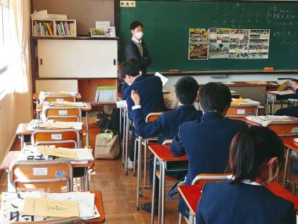 最初のクラスの半分の生徒が登校しています。