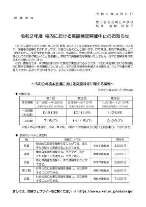 「梅丘中学校校内英検開催中止のお知らせ」
