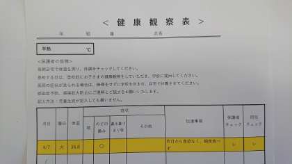 登校する日は、登校前にお子さまの健康観察をしていただき、学校に提出してください。