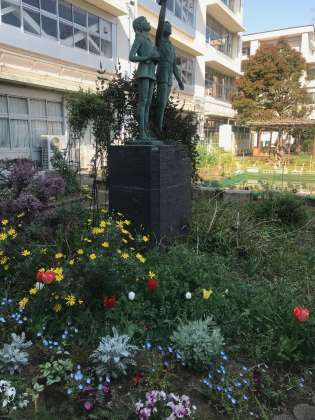 中庭の花壇には、主事さん方が手入れをしてくださった花がきれいに咲いています!