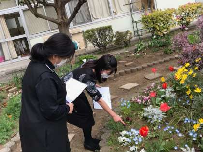 皆さん。こんにちは。長い休みが続き、家の中で過ごすことが多くなってはいないでしょうか?健康のためには日光に当たることも大切です。今日は昼休みを利用して、梅中の中庭を散歩してみました。春は生物の活動が活発になります。(蝶々も飛んでいました。)散歩の中で何種類の生物を発見できるかチャレンジしてみましょう。