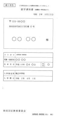 なお、就学通知書(保護者→学校長あて)がお手元にない場合は、