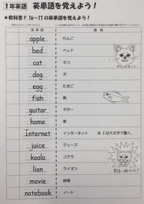本日、英語学習教材第2弾として「英単語を覚えよう!」(ヘボン式ローマ字練習のおまけ付)を掲載しました!