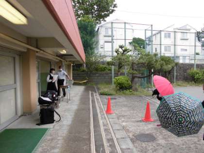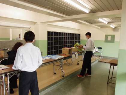 今日は午前中は2年生が、午後は3年生が、課題の提出と配布物の受け取りに分散登校しています。
