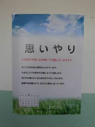 今月のめざす人格の形成は「思いやり」です。今、近くで対面してお話することができない状況ですが、心の距離だけは遠ざからないように、思いやりのある行動をとりたいものですね。