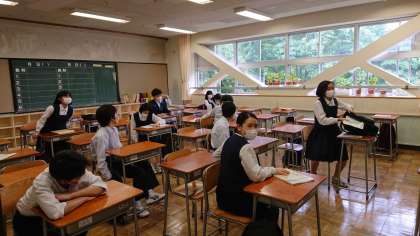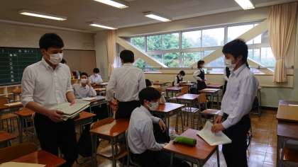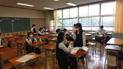 各クラス奇数の生徒は教室、偶数クラスは英語少人数クラスに別れておこないます。