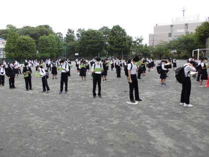 今日2年生は、雨上がりの校庭に集合することから始まりました。