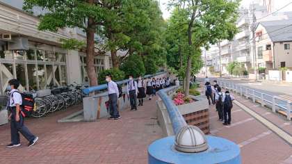 1年生全員が分散して、三密をできるだけ避けるようにして、登校しています。