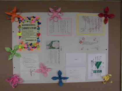 1年生 分散登校 祝電掲示