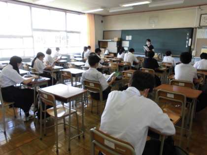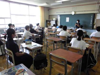 1年生は、道徳オリエンテーションを兼ねて、「語り合おう」という主題で、ワークシートに記入しながら自分の気づきや考え、感想を整理していました。