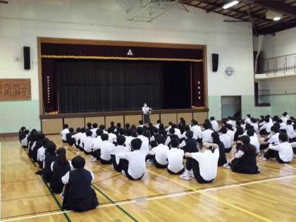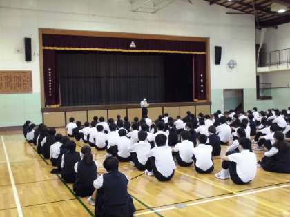 門部先生のお話は、集団としての成長を期待するという内容です。他クラスの友達を待つとき、友達と交流するとき、気づかいをし、なれ合いにならないよう、集団としてレベルアップしてほしいということを伝えていました。