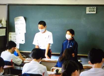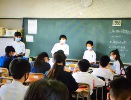 各クラス、学級委員が進行役を務め、委員会に所属する生徒が活動内容をクラスの生徒に伝えました。