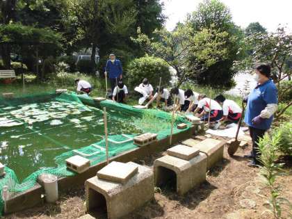 用務主事の方に教えていただきながら草むしりに勤しんでいます。