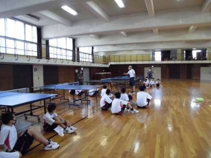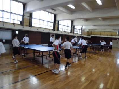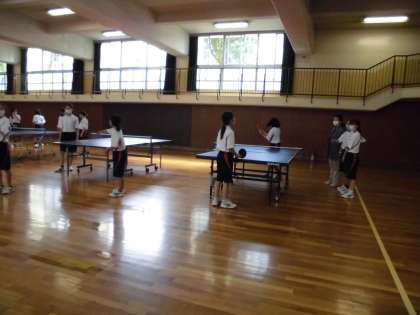 準備体操の後、今日は男女とも格技室で卓球を行いました。