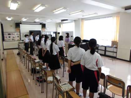 「歌はイメージが大切!」と先生の話を聞いた後、元気な声で校歌を唄っていました。