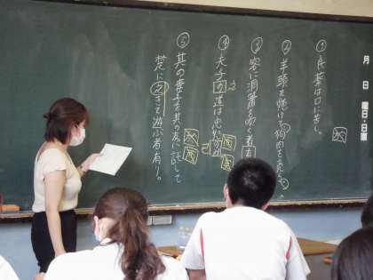中国語の原文である白文や訓読文、書き下し文を復習した後、先生が作成した練習問題に取り組みました。