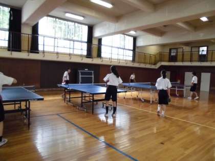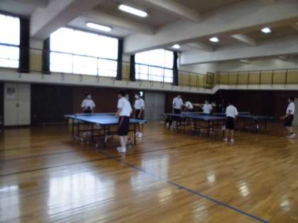 今日は、ラジオ体操をした後、格技室で卓球を行いました。