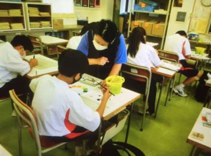 色の混ぜ方を教わりながら丁寧に仕上げています。