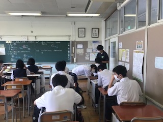 3年生は実戦的な学習や、話し合う活動を通して、思考力を高めるようにしています。考えることが大切だと伝えて、生徒に思考を促しています。写真は、社会と理科の様子です。がんばれ梅中生!