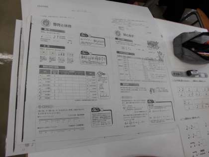 音符と休符、拍と拍子、また、楽器名など楽典の多くの問題を資料プリント等を参考にしながらよく答えていました。