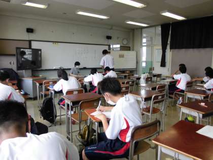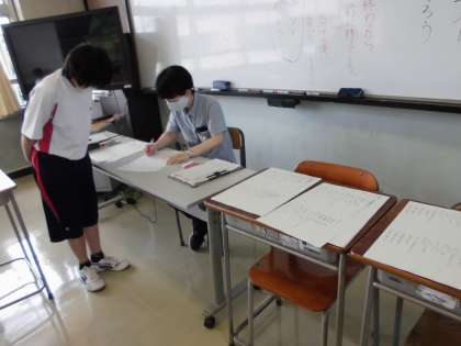 プリントを1枚、終わらせるたびに先生から確認してもらい、間違えた漢字を何回も練習している生徒もいました。