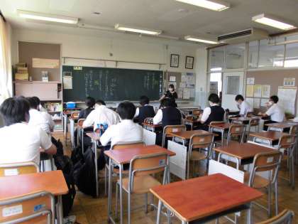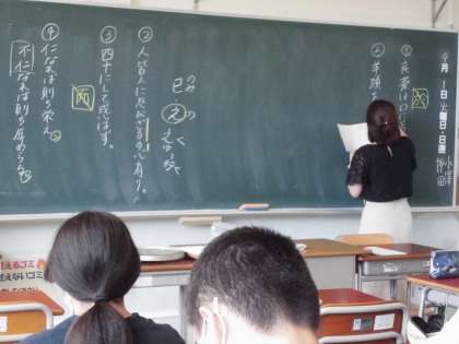 書き下したことわざ(羊頭を懸けて狗肉を売る等)の説明を生徒はとても興味深く聞いていました。