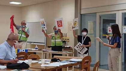 感染症の影響で、1学期に会議が開催延期となっていましたが、本日ランチルームで開催されました。当日の班の仕事や、避難所のコロナ感染症対策について、地域の方々と2年生合同の開会式はなくす等、密集を避け注意を払って、11月14日(土)に行う予定です。