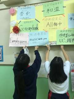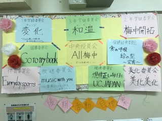 後期の生徒会活動がスタートしています。生徒総会に向けて、新生徒会中央役員が各委員会の活動目標をまとめ、掲示しました!!