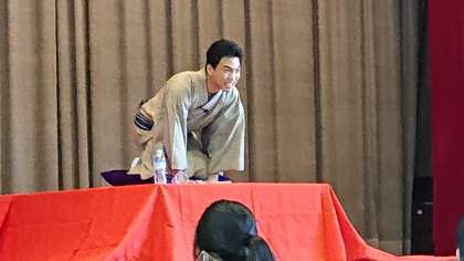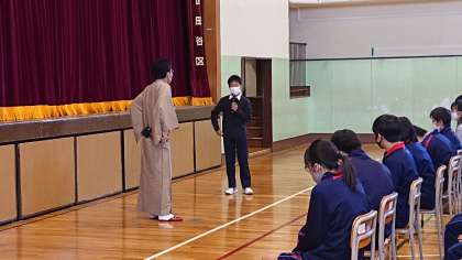 落語とは、会話の形式で物語をはなすもの。なぜ、落語家を選んだのか、中学時代は音楽が好きで、やりたいことしかやらないと考えていた。高校に入っても、今まで聞いた事のない音楽を探し続け、大学生になって文芸に興味をもった。落語というものがあることを知り、文化人になるために知っておかなければならないと思いよく聞いた。友達から「落語は音楽と同じだね」と言われてハッとした。そこから、落語にはまり今にいたった。御師匠さんからは、「よい落語はリズムとメロディーがある。」と言われ、そのとき自分は音楽が好きだったから落語も自然と好きになったのだと理解できた。自分が好きな事を探し求めていったら落語にたどり着いた。御師匠さんからは、落語というものは「人間の業の肯定」なんだ。と教えられた。「人間なんてこんなものなんだと認めてあげること。」それが落語なのだというお話しをしていただきました。その後一席もうけてくださいました。