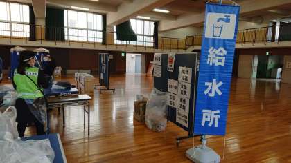 今日は、松原5・6丁目自治会の運営委員による避難所運営訓練を行います。地域の担当、係のPTAの方々と2年生生徒を格技室と体育館で分けて同時におこないます。生徒は体育館で開会式後、校庭で4つの訓練の講習を受けます。