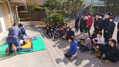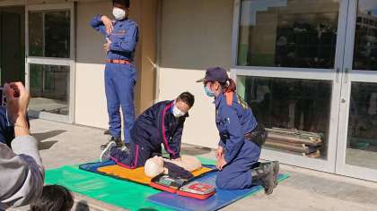 応急救護訓練、AEDの使い方を教えていただきました。特に、AEDについては、倒れた人が意識が戻ったときはすぐ止める。救急隊員がきたらすぐに変わる。のもポイントにあげられました。