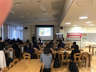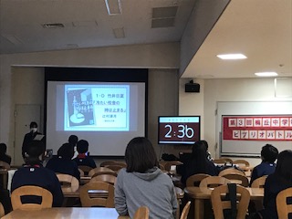 ビブリオバトルの校内本選が行われました。1年生の部は、各クラスから選ばれた代表4人が発表しています。