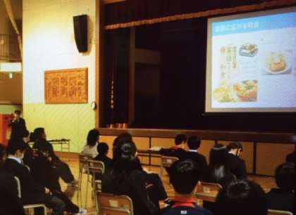 本日の日本語の授業のテーマは食文化です。日頃、給食でお世話になっている本校の栄養士の豊島先生がスライドを使いながら分かりやすく日本の食文化の優れたところを紹介してくださいました!