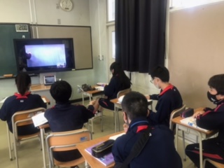 クラスを2つに分け、zoomを使用して離れた2箇所で同時に授業を行ってみました。