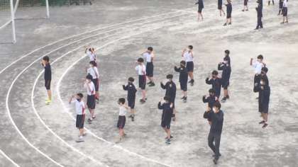 学年ごとに集まり、応援団からダンスの振り付けを教わっています。覚えるのが早く、みんな頑張っています!