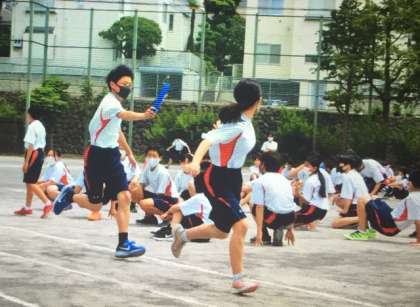 ラジオ体操、全員リレー、大縄の練習を行いました。