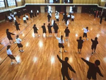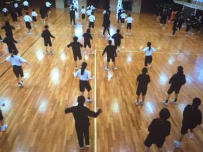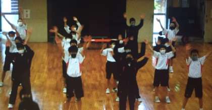 雨天のため体育館と格技室で練習しました。応援団が中心となり、振り付けを確認していました。