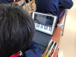 2年生の音楽の授業ではチャイムを自作し、実際にピアノを演奏して発表しています。