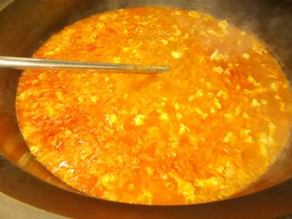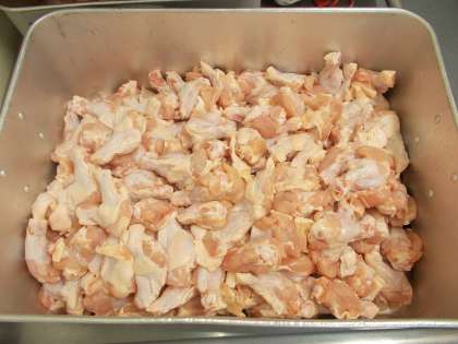 たくさんの鶏肉を大きな回転釜で煮込みました。