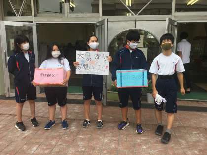 本日も登校時に生徒会役員が昇降口前に立ち、寄付活動とあいさつ運動を行いました。