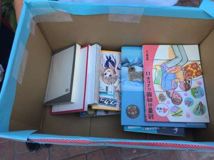 > 寄付活動も終盤、今日は多くの人が本の寄付してくださいました。
