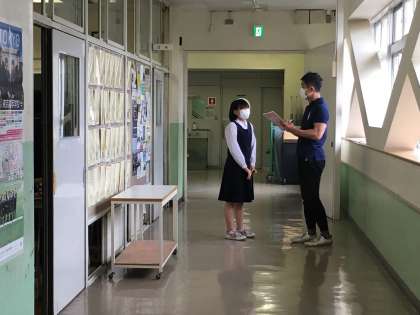 →廊下で憲法の確認テストをしています。