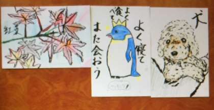 贈る相手をイメージしながら、絵手紙を作成しました。1時間でしたが、風情のある、可愛らしい作品が完成しました!