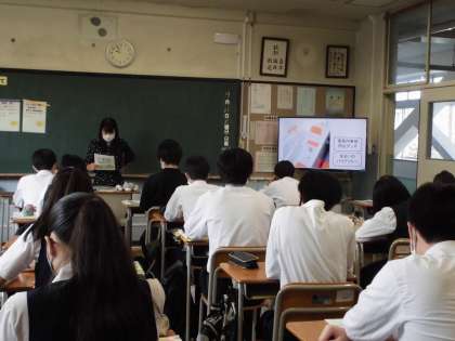 本日の3年生の家庭科の授業は「安全な住まいを考える」でした。学校の中、学校の周辺、街中でのバリアフリーについて考えました。白状を持った方が白状を上にあげたら「助けてほしい」というサインです。もしこのような場面を見かけたら、「どうしましたか?」と話しかけ周囲にいる大人たちに知らせてほしいです。どんな人も安心して暮らせる世の中になるよう、中学生としてできることを行ってみましょう。