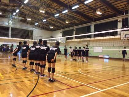 基礎練習の後、2年生女子と1年生男子で練習試合を行いました。4セットの実践から、練習の成果や今後の課題を確認しました。